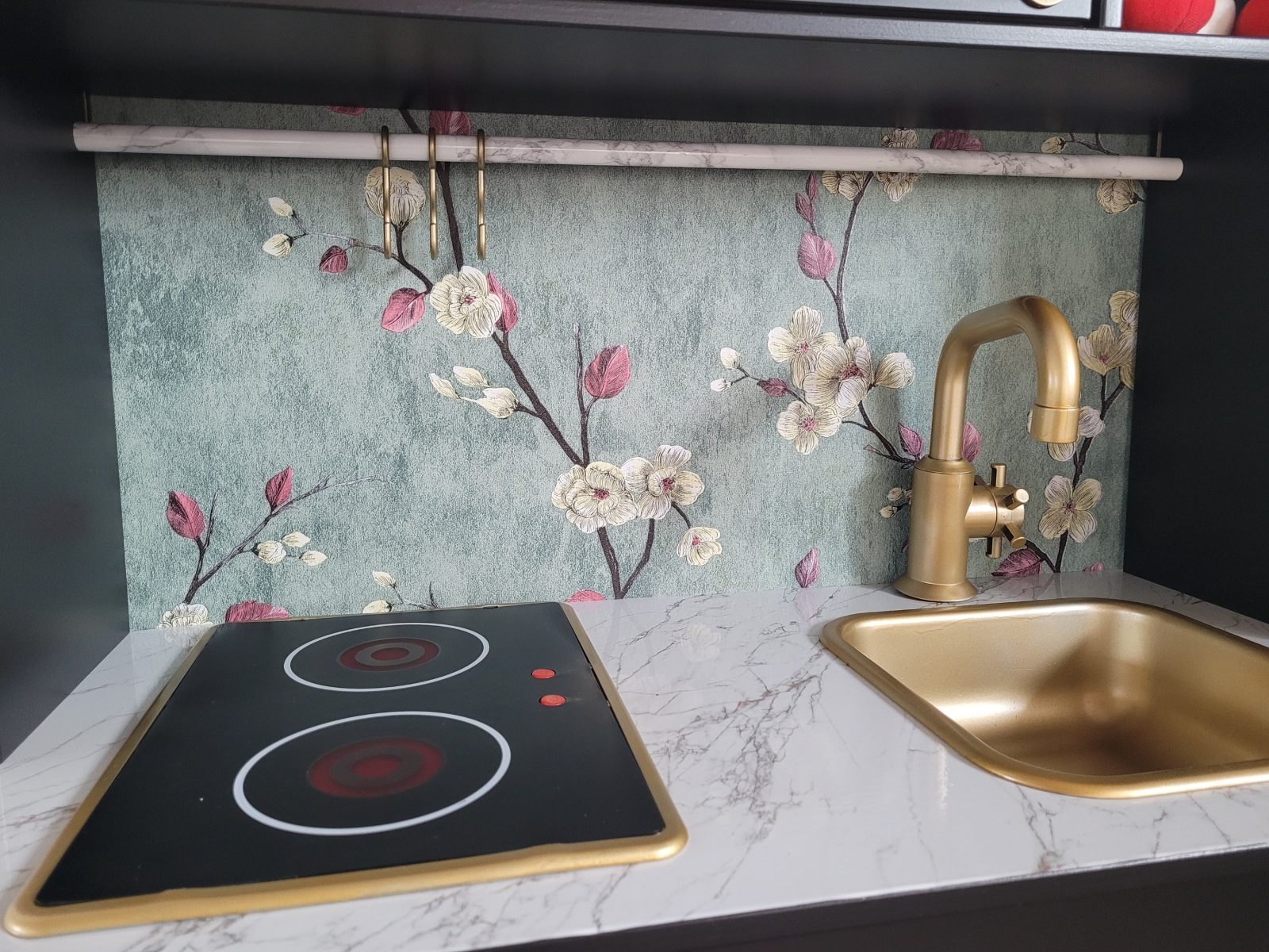 Achterwand Ikea Duktig speelkeukentje kaal, krijtbord of bloemen